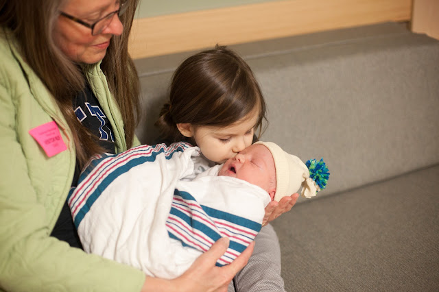 Grandma & Grandpa Smith + Lisa came to visit with Lexi a few hours after the birth. They brought us some needed Jamba Juice and watched Lexi for three nights. You can tell she was high on life from all the changes. Uncle Troy showed up as they were leaving and Uncle Lance stopped by the next day.